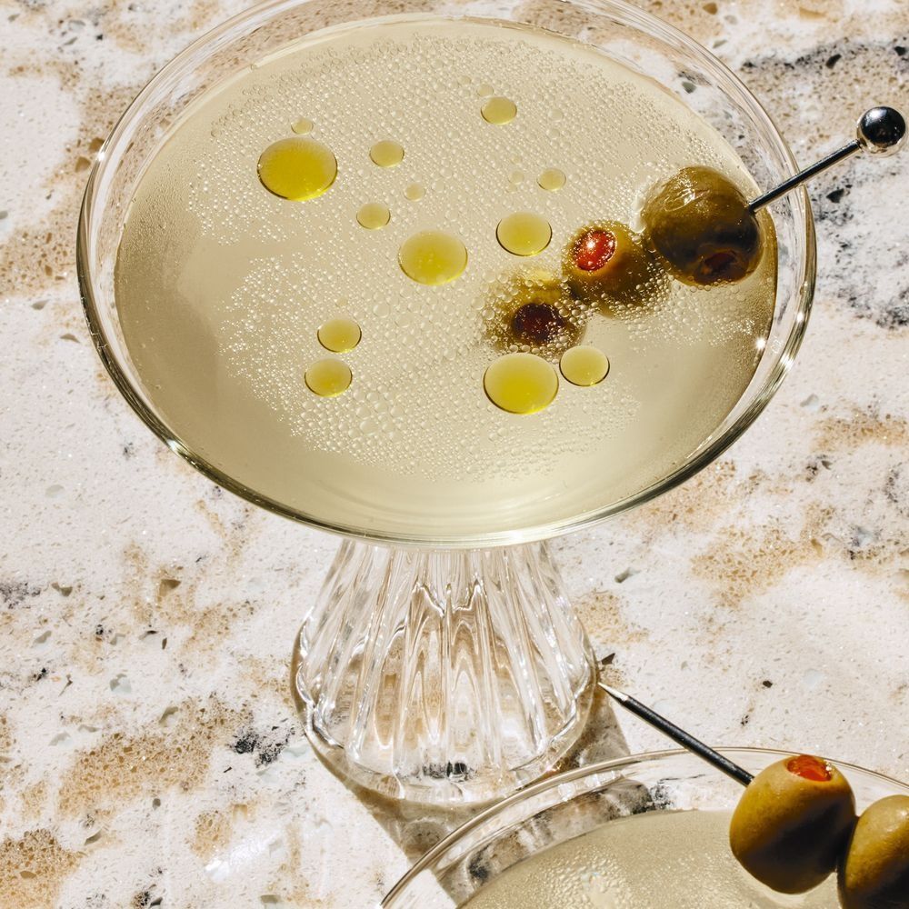 Tüm malzemeleri buzla birlikte shaker’da karıştırın. İnce bir süzgeçten geçirip soğuk martini bardağına dökün. Üzerine yeşil zeytin ekleyin. İlk yudumda “Vay be!” demeniz garanti.